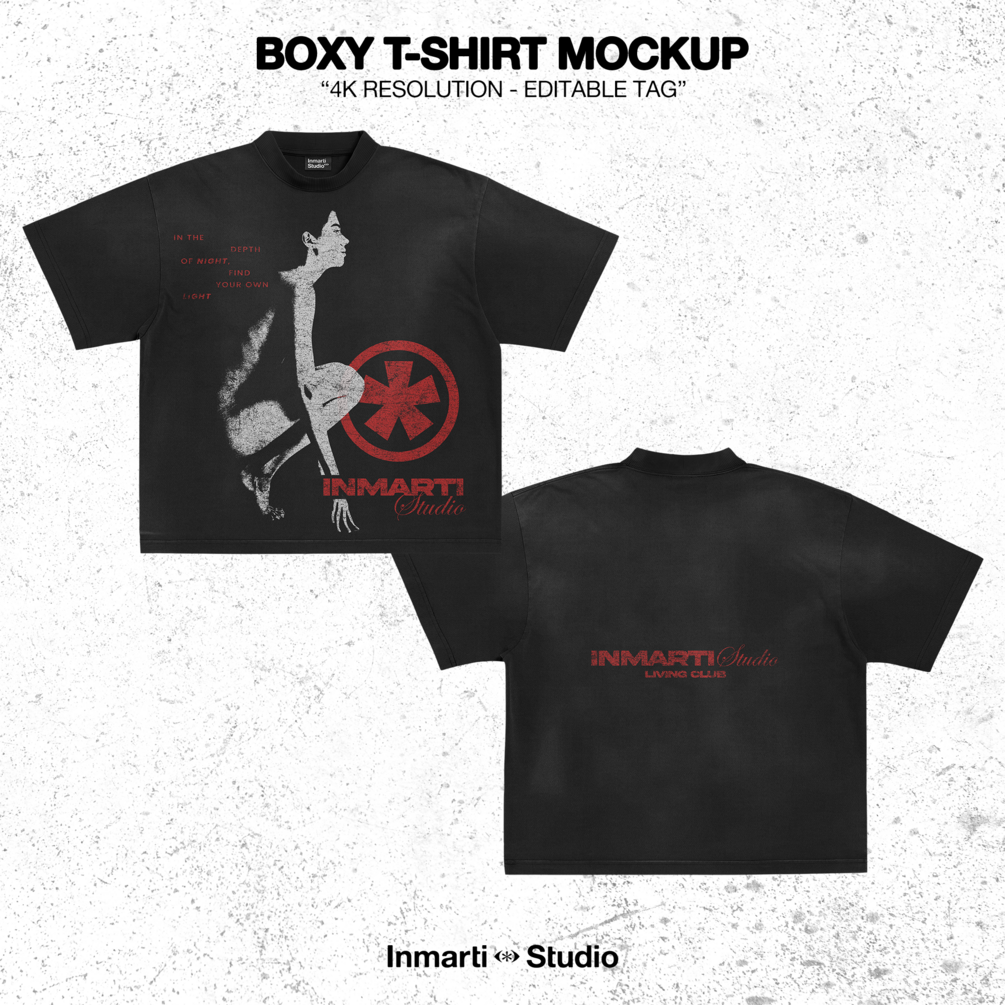 This boxy t-shirt mockup is ideal for displaying the design of your brand, easy to use, and suitable for all design styles.