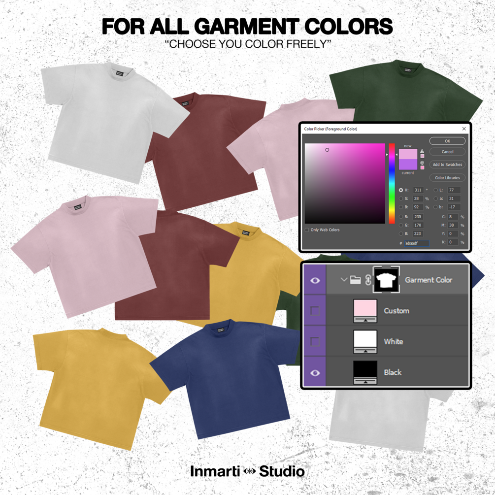 - PNG Mockup File (Front and Back Black Garment and Front and Back White Garment)